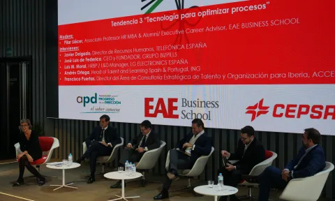 En un mundo VUCA, donde está inmerso el mercado laboral actual, la formación de los empleados y el desarrollo profesional son piezas clave dentro del éxito de las organizaciones. La adaptación a los cambios, de forma rápida y correcta, requiere continuamente de nuevas habilidades y competencias entre los trabajadores de las compañías, tanto en los talentos jóvenes como en los ya consolidados. Para analizar las tendencias y conocer, de primera mano, cómo están llevando a cabo estos procesos empresas líderes de su sector, EAE Business School organizó, en colaboración con la Asociación para el Progreso de la Dirección (APD) la jornada "Tendencias en formación y desarrollo en la empresa", celebrada el pasado lunes 27 de noviembre en el Auditorio de CEPSA.