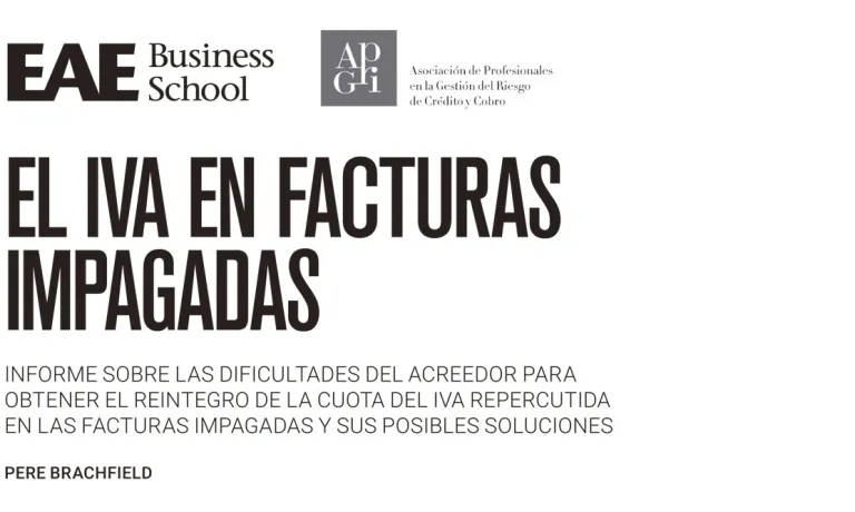 EAE Business School presenta el informe "El IVA en facturas impagadas" dirigido por Pere Brachfield, Director del Centro de Estudios de Morosología de EAE. El objeto de este estudio es demostrar que las condiciones y trámites exigidos al acreedor para recuperar el IVA de aquellas facturas incobrables, requiere de unos conocimientos demasiado amplios, una inversión de tiempo importante y, además, un coste económico considerable.