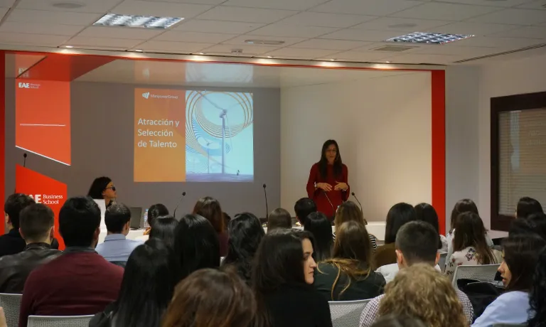 De 384 becarios que pasaron en 2016 por ManpowerGroup España, algo más del 10% provenían de las aulas de EAE Business School. Son las cifras que nos ha dejado Marta Saavedra, Responsable de Atracción y Selección de Talento de Manpower, al preguntarle por qué habían regresado al Campus de Madrid a darse a conocer y dedicar cerca de una hora y media en hacer entrevistas individuales a los alumnos.